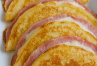 Крок 1. Просійте борошно, щоб уникнути грудочок у тісті для млинців. Додайте сіль. Зробіть заглиблення в центрі та влийте туди збиті яйця. Змішайте