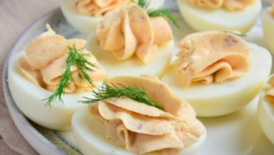 💥 Приготування Яєць, фаршированих лососем та сирним сиром 💥 Інгредієнти: Приготування: Ця проста та смачна страва виглядає особливо апетитно, якщо ви використовуєте кулінарний
