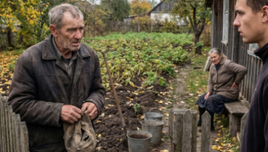 Мишко, я чого прийшов – м’яв кепку в руках батько – може допоможете нам з матір’ю картоплю викопати? Сором якийсь, у всіх уже