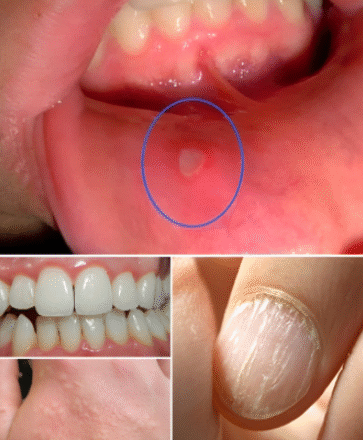 Чи траплялися у вас ці маленькі виразки в роті, які, здається, ніколи не гояться? Повторювані виразки або тріщини в куточках рота можуть свідчити про дефіцит вітаміну B (B1, B2, B6) або заліза. Подібно до того, як автомобіль попереджає вас про те, що він ось-ось зламається, ваш рот подає вам попередження. Подумайте про те, щоб додати до свого раціону сочевицю, курячу печінку, яйця або насіння кунжуту .