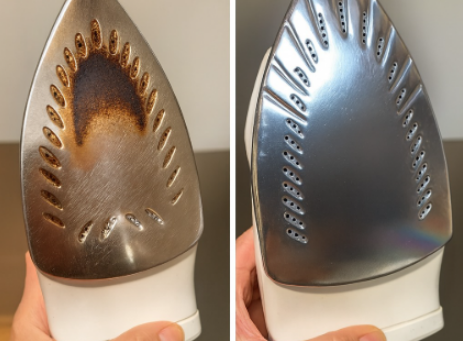 З часом на підошві праски накопичується накип, пригорілі залишки тканини та навіть крихітні плями, невидимі неозброєним оком. Якщо ви використовуєте воду з-під крана, це ще помітніше: мінерали просочуються у вентиляційні отвори та утворюють відкладення. Результат? Праска пригорає, залишає плями та втрачає свою ефективність.