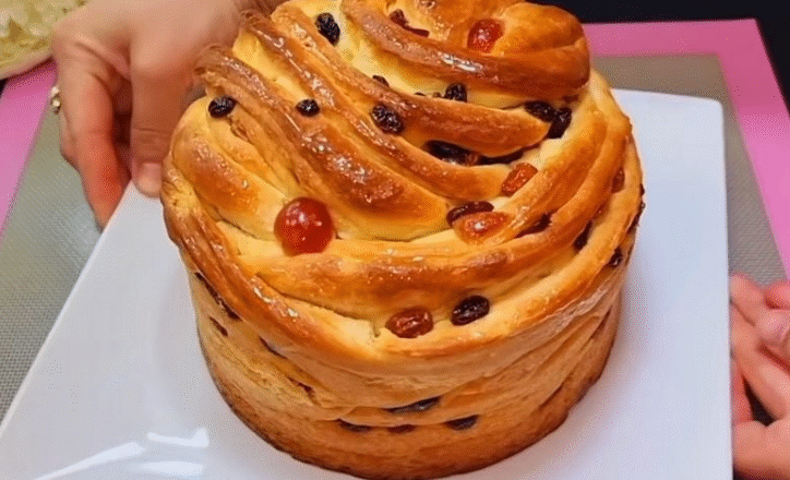 - Розріжте рулет гострим ножем уздовж навпіл, потім закрутіть половинки у спіраль. Помістіть паски у форму для запікання, накрийте плівкою та залиште у теплому місці на 20 хвилин для підйому.