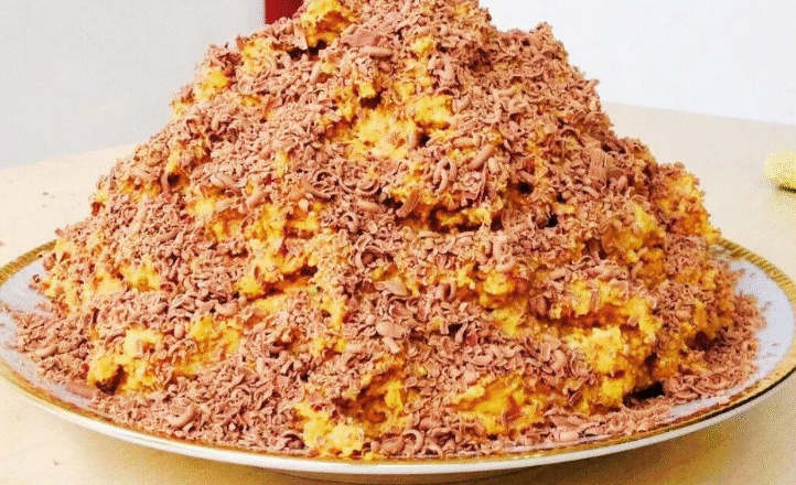 - Сформувати торт. Викладіть отриману масу на тарілку, надаючи їй форму гірки чи конуса.