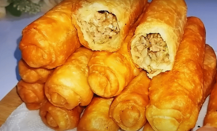 Готові трубочки виходять хрусткими зовні та неймовірно соковитими всередині. Вони ідеально підходять для ситного перекушування або обіду, а також є відмінною альтернативою покупним біляш і чебурекам. Подавайте трубочки гарячими з улюбленим соусом, свіжими овочами чи зеленню. Приємного апетиту та смачних моментів з вашими близькими!