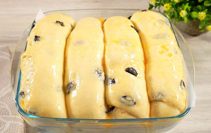 - Родзинки можна попередньо замочити в теплій воді або ромі — так він стане ще м’якшим і ароматнішим.