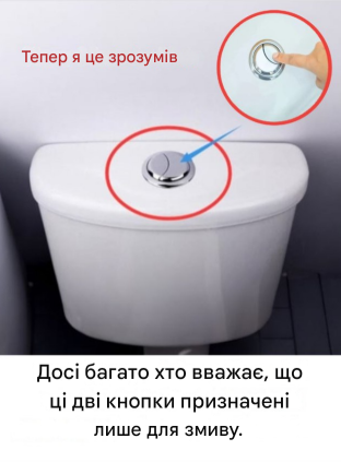 Сучасні туалети мають два типи змивів, один з яких менший за інший.