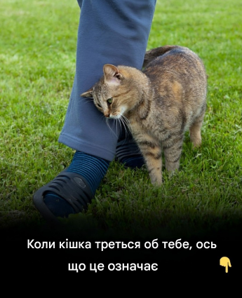 Коли кішка треться об вас, вона не лише просить вашої уваги, а й спілкується. У котів є пахучі залози навколо щік, чола та хвоста. Тручись об вас, кішка залишає свій запах, позначаючи вас як частину своєї території та кола спілкування.