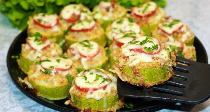 • Наповніть кабачкові кільця приготованим фаршем