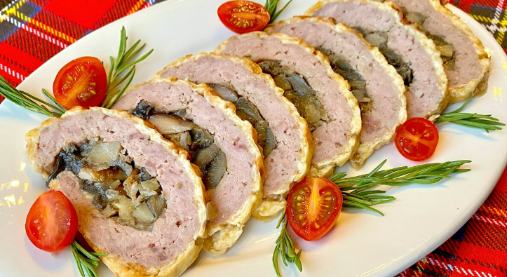 Хочу поділитися рецептом м’ясного рулету у сирній скоринці .