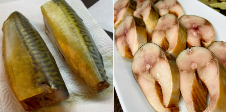 Дістаємо скумбрію, обтираємо паперовим рушником.