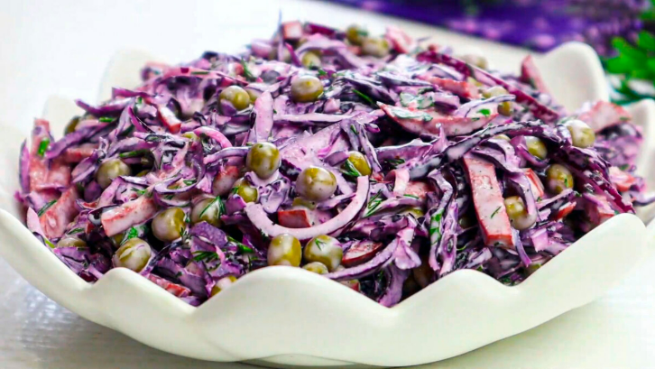 Червонокачанну капусту 200-300 г наріжемо тонкою соломкою, викладаємо в миску. Додаємо трохи солі та руками перетираємо, щоб капуста стала м’якшою.