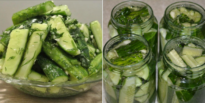 - Простерилізуйте банки. Покладіть в них огірки і налийте сік, що утворився під час маринування.