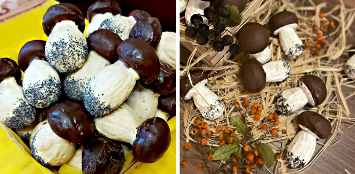 Звичайно, часу в неї так прикрашати грибочки не було, але капелюшки завжди були прикрашені білою глазур’ю і посипані маком.