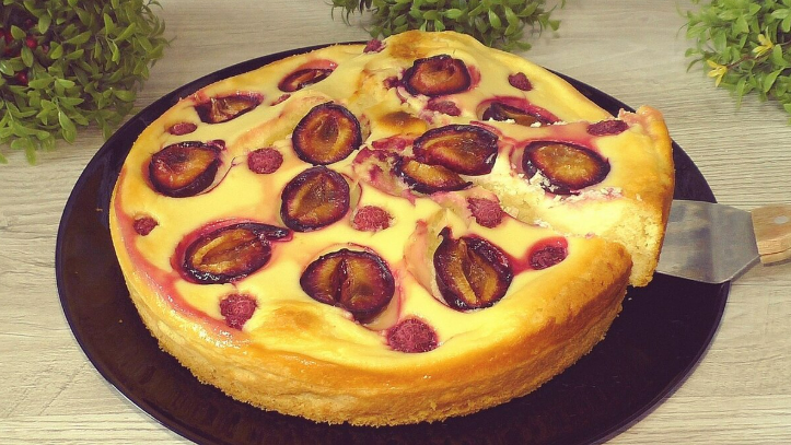 Зверху будь-яке наповнення, у мене сливи і трохи малини.