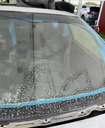 На лобовому склі були ледь помітні сліди — майже як крихітні відбитки лап — яких не було минулої ночі.