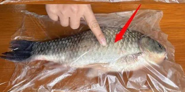 - Тримаючи рибу через пакет, починаєш акуратно зчищати луску: