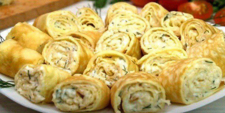 - Наріжте трубочки на порційні шматочки, обережно викладіть на блюдо і подавайте до столу.