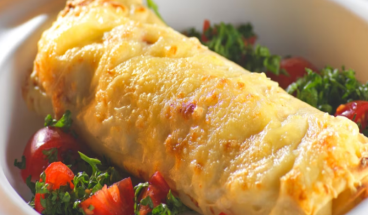 Змастіть рештою соусу бешамель і посипте невеликою кількістю тертого сиру. Випікайте 10 хвилин або доки млинці не стануть золотисто-коричневими та не почнуть пузиритися.