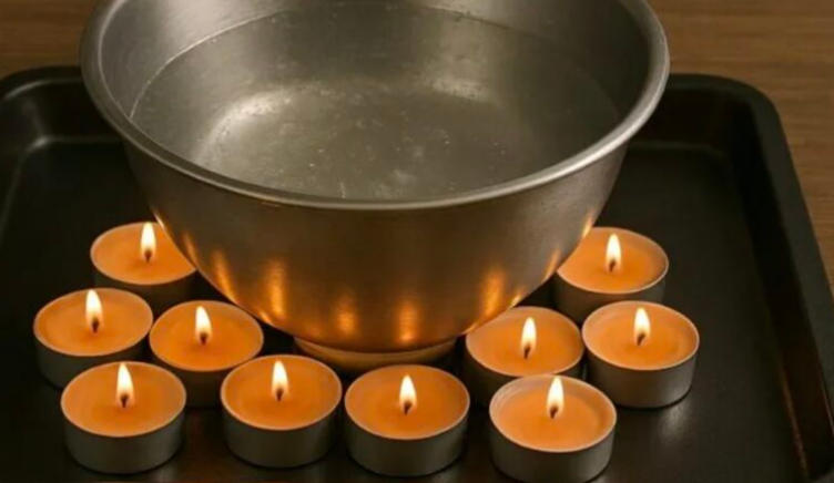 Без крутого окропу не обійтися навіть під час блекауту. Отримати його можна різними способами. Напевно, найпростіший варіант – використання чайних свічок. Дістаньте з духовки деко, розкладіть на ньому 10-15 штук.