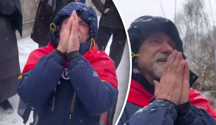 У чоловіка полилися сльози, він впав на коліна і почав дякувати усім за повернення свого сина.