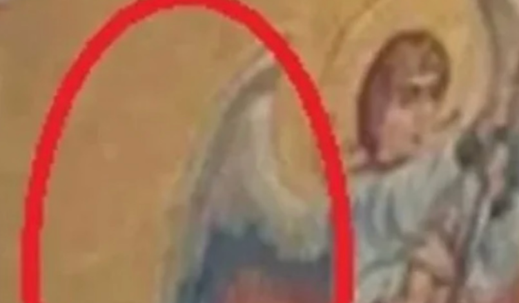 Ангел з крилами в кольорах прапора Росії у вівтарі церкви УПЦ МП на Тернопільщині