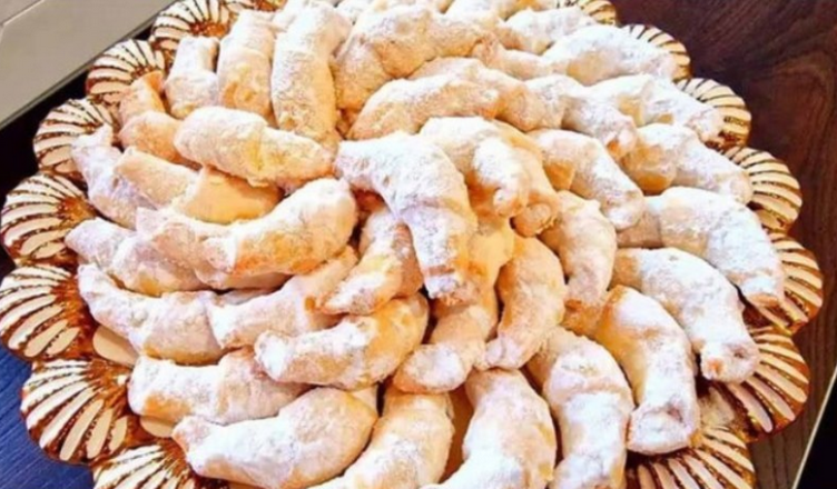 Деко від духовки застилаю пергаментом і викладаю печиво. Випікаю у розігрітій духовці при 180 градусах 30-35 хвилин. Беру пакет, висипаю цукрову пудру і ванілін, кладу туди рогалики і струшую. Таке м’яке печиво вам точно сподобається до чаю!