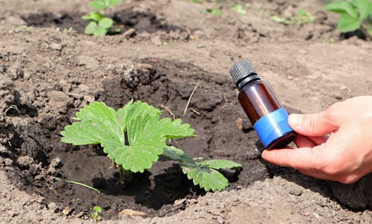 ✅ Ретельно перемішайте та полийте кущі прямо по листі – не тільки під корінь, а й зверху. Полуниця відмінно засвоює йод через листя !