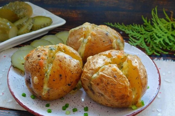 Поданий нижче рецепт приготування ароматної та соковитої картоплі точно завоює вашу увагу. Цей простий, але в той же час вишуканий спосіб приготування картоплі надає йому настільки насиченого смаку, що додаткові інгредієнти здаються зайвими. Кожна бульба просочується ароматом вершкового масла і часнику зсередини, сир розтоплюється і створює апетитні нитки, а шкірка хрустка додає особливий шарм.