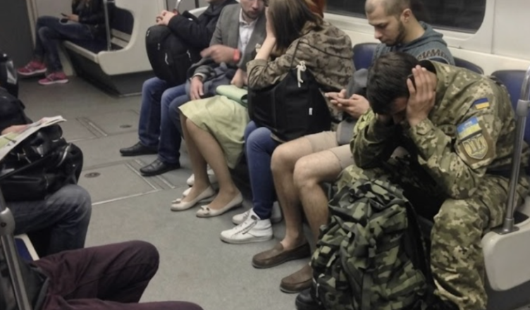 Коли через кілька станцій людей стало менше, я побачила чоловіка у військовій формі з дуже стомленим обличчям.