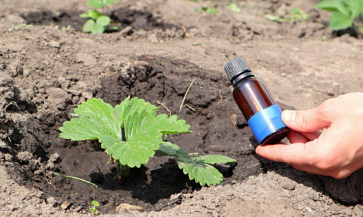 ✅ Ретельно перемішайте та полийте кущі прямо по листі – не тільки під корінь, а й зверху. Полуниця відмінно засвоює йод через листя !