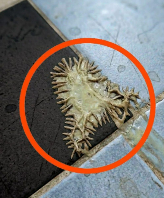 Вона виглядала як якась вологе, органічне скупчення, щось, що не пасує до чистої, сучасної ванної кімнати. Чим довше ми дивилися, тим менше сенсу це мало.