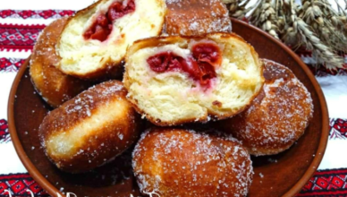 #пампушки Доброго вечора, дівчатка! Сьогодні хочу поділитися рецептом смачних пончиків із вишнями. Для цього потрібно: Розмішати віночком і залишити на 20 хв, щоб