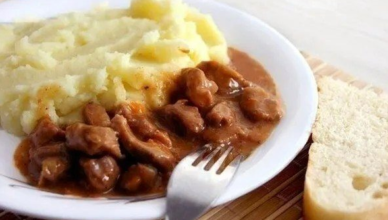 Цей рецепт справжня класика з дитинства ! Ніжний м’ясний гуляш з ароматною підливою та повітряне картопляне пюре – смак, який знайомий кожному. Прості інгредієнти, зрозумілий процес приготування