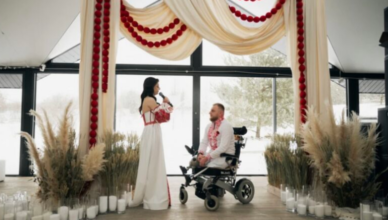 У Львові 29-річний ветеран Тарас Левкович, який втратив на фронті обидві ноги, одружився зі своєю дівчиною Вікторією Опришко. Раніше боєць освідчився коханій у день першої